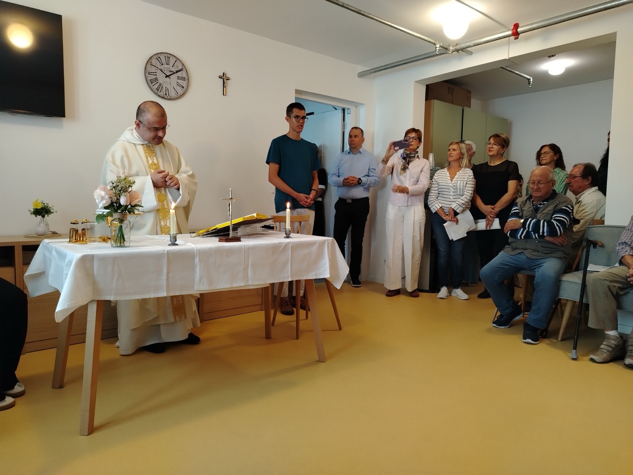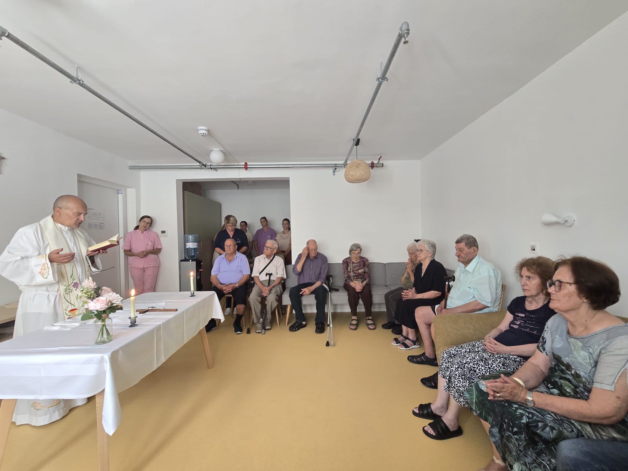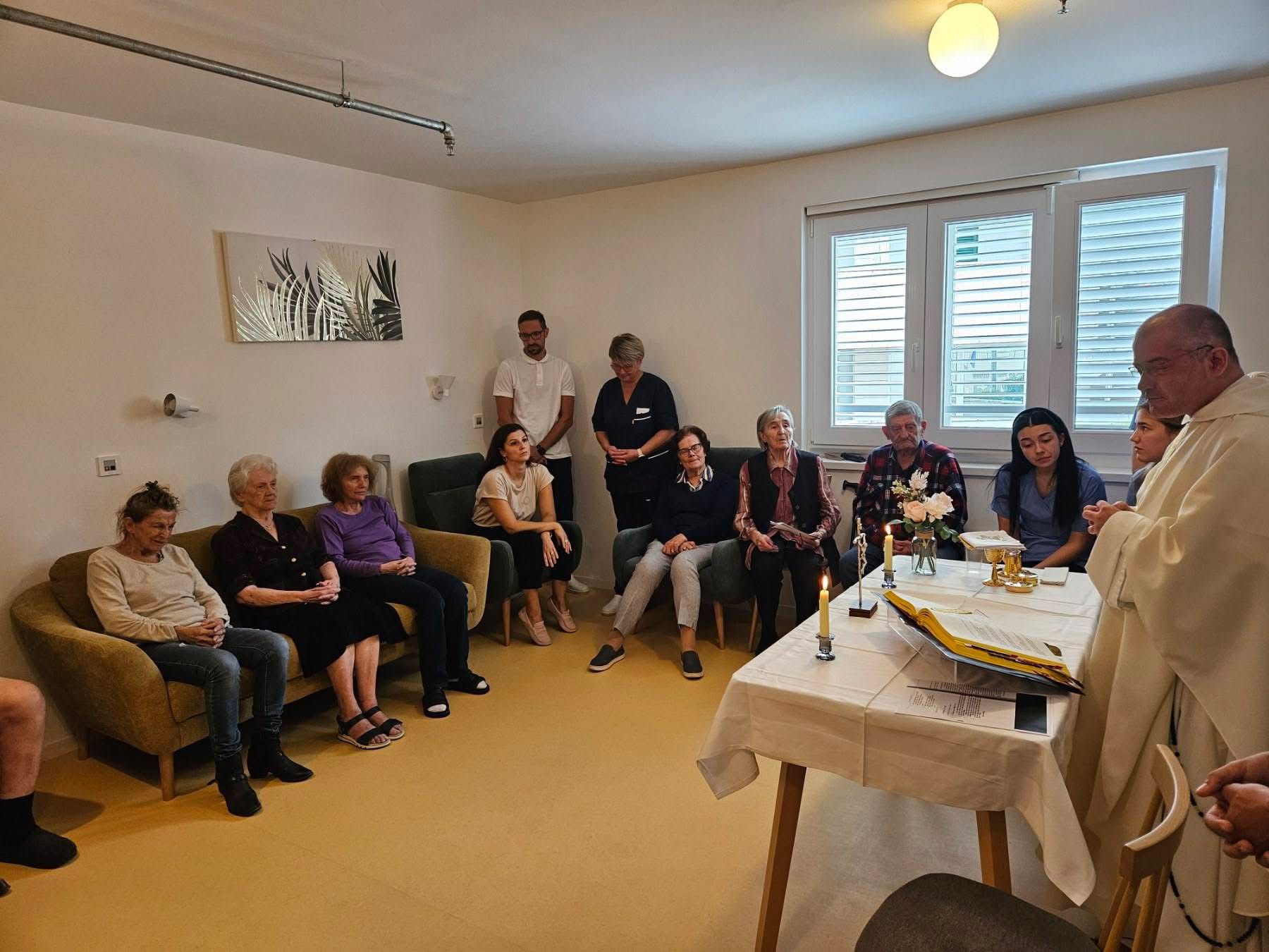 U našem se Domu redovito održavaju svete mise zahvaljujući susretljivosti naših župnika. Posebno je svečano u dane blagdana kada obrede uveliča i zbor Župe Sv. Križa. Hvala im na odazivu i duhu mira i blagoslova koje donose sa sobom.